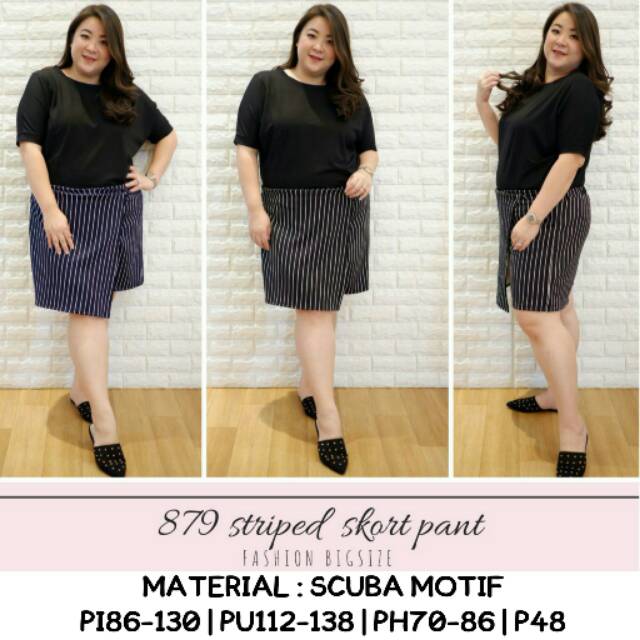 jumbo 879 striped skort pant bigsize celana rok pendek