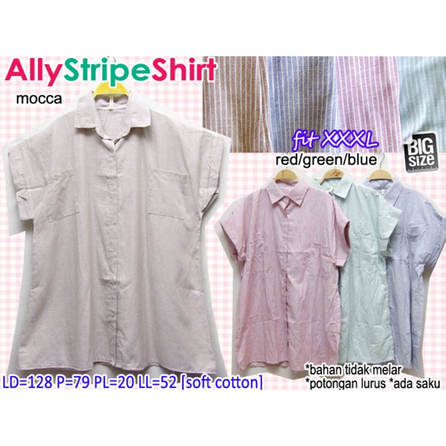 Atasan Big size Kemeja Wanita Ally Stripe Shirt XXXL JUMBO BESAR POLOS BASIC MURAH REAL PIC pada tanggal Mei 03, 2019 Dapatkan link Facebook X Pinterest Email Aplikasi Lainnya ally stripe shirtxxxlsoft cottonmocca, red, green, bluemohon tanya stok dulu sebelum buat pesanan.Harga: 108000Beli di Shopee sekarang