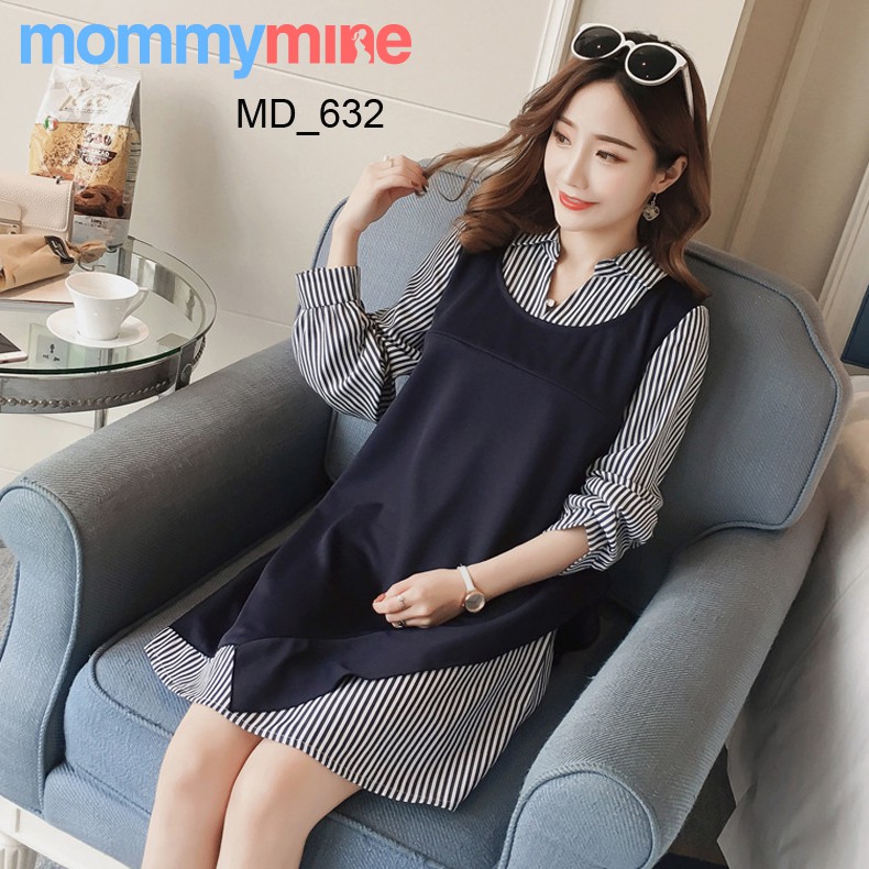 atasan ini dengan motif salur dan motif susun yang nampak lebih modis meski sedang hamil .