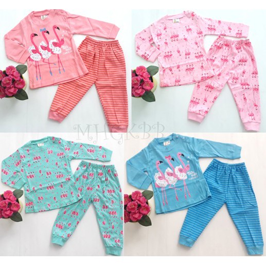 Baju Tidur Pakaian Dalam Anak Perempuan BB @36rb seri 4pc E059 sleepy girrafe piyama flamingo size 6,12,18m Murah Bayi