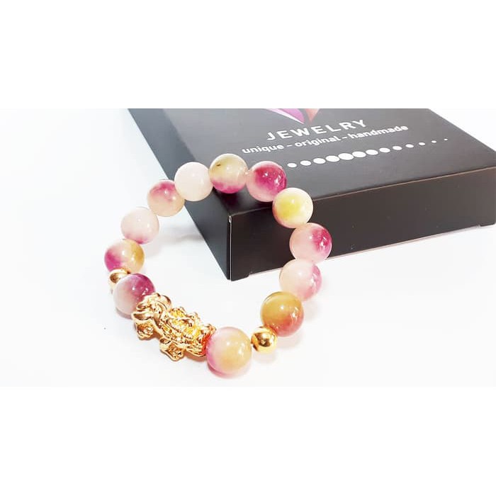 gelang pria wanita batu giok 13mm bandul naga pixiu - gelang terapi kesehatan