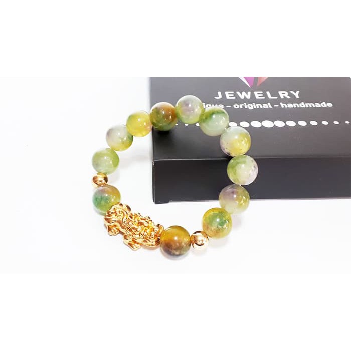 gelang pria wanita batu giok 13mm bandul naga pixiu - gelang terapi kesehatan