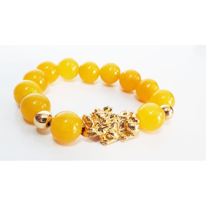 Bangle Gelang Pria Wanita Batu Giok Kuning Terang 13mm Bandul Naga Pixiu Murah Aksesoris