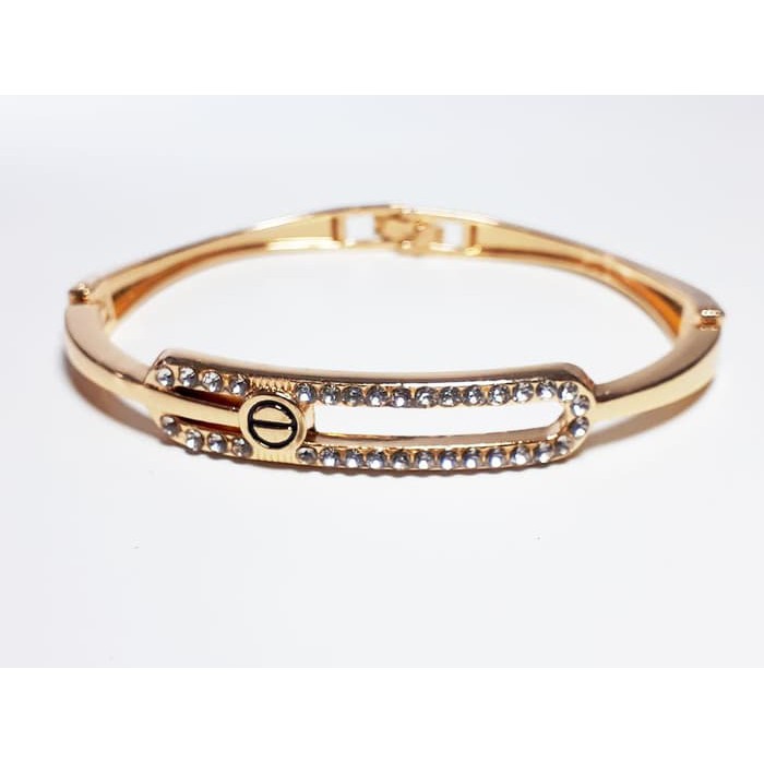 gelang tangan wanita berbahan rhodium dengan lapisan emas 18k sangat indah dan elegan. gelang tangan ini bisa dikenakan untuk segala kondisi baik formal maupun informal.