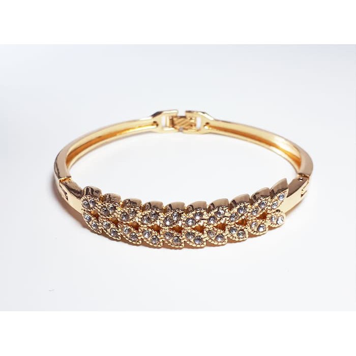 gelang tangan wanita berbahan rhodium dengan lapisan emas 18k sangat indah dan elegan. gelang tangan ini bisa dikenakan untuk segala kondisi baik formal maupun informal.