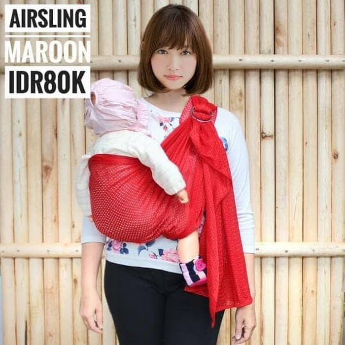 airsling adalah baby sling yang menggunakan performance athletic mesh yang kuat yang memberikan breath-ability(kemampuan bernafas) yang harus dimiliki saat babywearing di cuaca panas. kainnya seperti baju renang ringan dan halus yang membuatnya tetap ringan didalam air dan lekas kering. jadi anda bisa menggendong bayi di waterpark atau didalam kolam renang. hal ini terkadang sangat dibutuhkan untuk menjaga tangan tetap bebas saat bermain dengannya atau membantu anak lainnya didalam air.