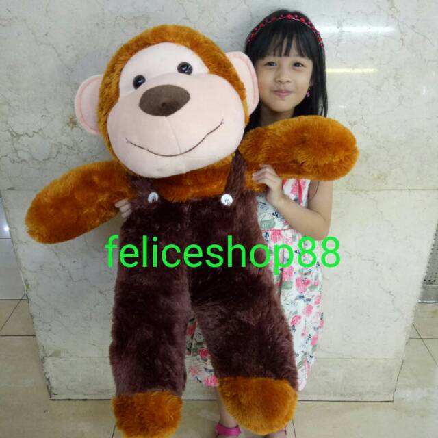 boneka monyet, ukuran tinggi 80cm, berbahan raspur yang halus dan lembut. bagian dalam diisi dengan dakron berkualitas sehingga tidak mudah kempes walau sering dipeluk dan di cuci.