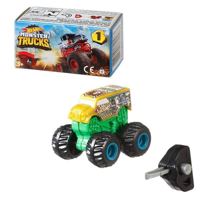 Diecast Mobil Hot Wheels Monster Trucks Mini Jam w/ Power Key Launcher 1:100 Hound Hauler Murah Mainan
