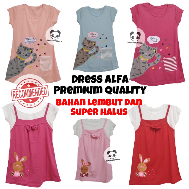 Dress Pakaian Anak Perempuan Premium Alfa/ usia 2-5 tahun/ motif kucing/ kelinci/ Baju terusan Murah Bayi