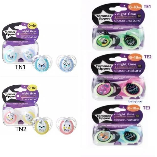 Empeng Mainan Bayi Anak TOMMEE TIPPEE Glow in the Dark isi 1 2 | Soother 0-6m 6-18m Night Time Dot 0-6 6-18 bulan Murah Ibu