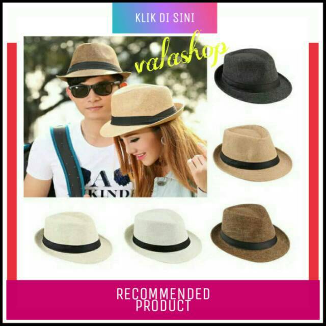 topi fedora knitted straw polos dewasa
