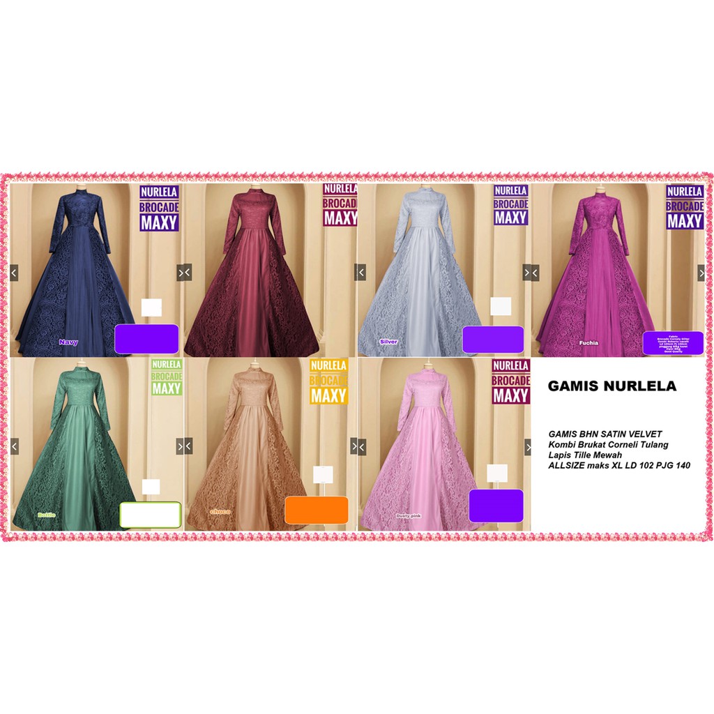 Gamis Dress Muslim Nurlela Maxi Pesta Brukat Corneli Tulang Tebal Satin Velvet + Tile Mewah Terlaris !! Murah