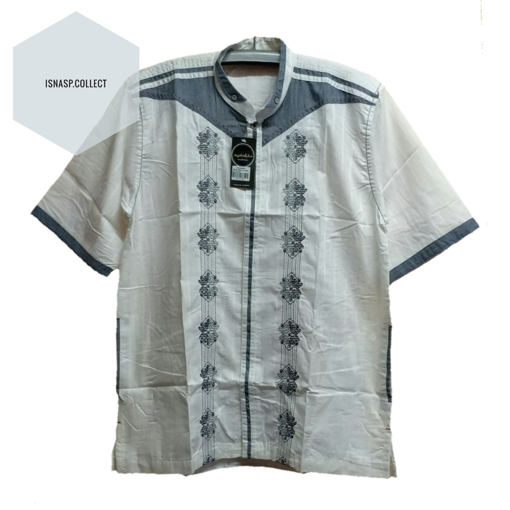 Gamis Pria Atasan Muslim Koko Dewasa Syahdika Putih Motif Bordir Size XL KDN 80 Pendek AG-9045 Baju Cowok Murah