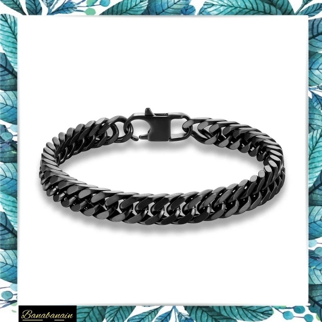gelang titanium hitam rantai premium pria cowo