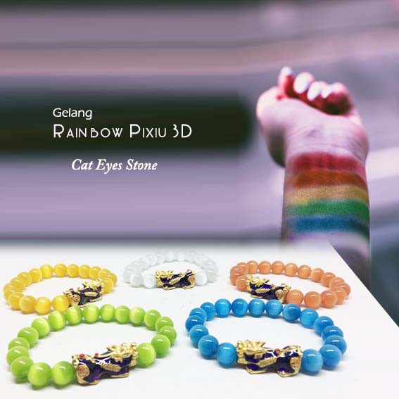 gelang rainbow pi xiu 3d (berubah warna) cat eyes stone (gcs36)
