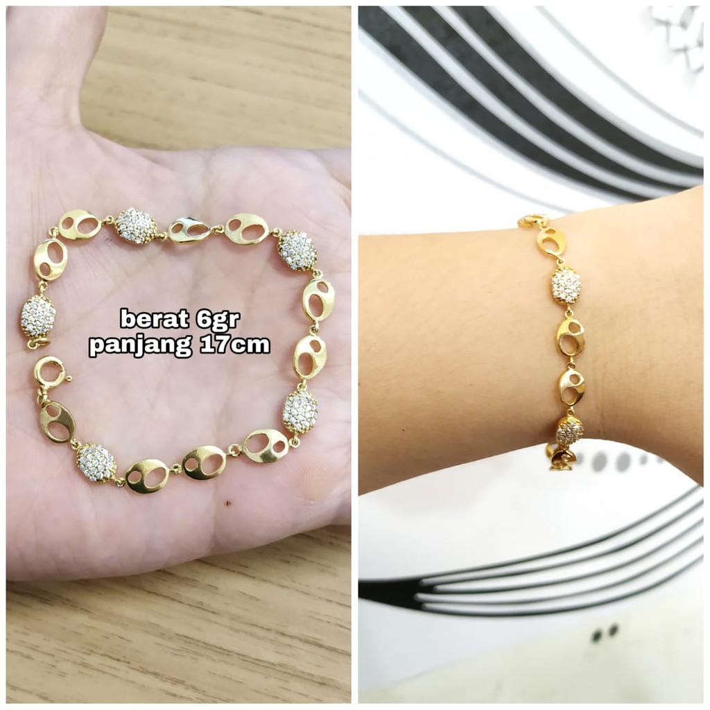 perhiasan yg dijual semua brg baru 100% bkn brg cucian jd dijamin mulus dan mengkilat seperti emas asli..