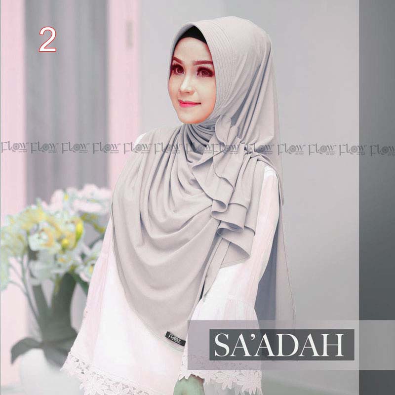 flow sa'adah adalah jilbab instan dengan aplikasi remple yang cantik di bahu. material jersey premium korea, halus, adem sekali, nyaman. ada pad. berat @235gr. 1kg muat 5pcs. posisi jilbab dipakai, pd = 46cm dari dagu ke depan, pb = 86cm dari dahi ujung pad ke belakang. keliling lubang muka 50cm.