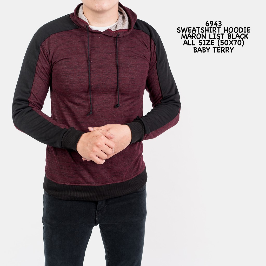 Hoodie Outerwear Freypv 6943 Sweatshirt Maron List Black Jaket Murah Pria