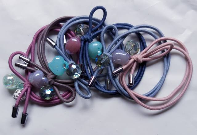 ikat rambut karet rambut dengan variasi dua biji kristal imitasi cantik.