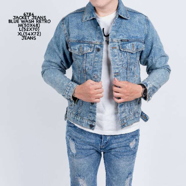 Jaket Jeans Jacket Blue Wash Retro Denim Murah Pria