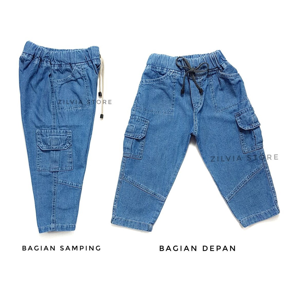 celana jeans cargo yang menarik dan lucu untuk kesayangan buah hati. bahan halus, lembut, adem sangat nyaman digunakan, membuat tampilan anak semakin keren