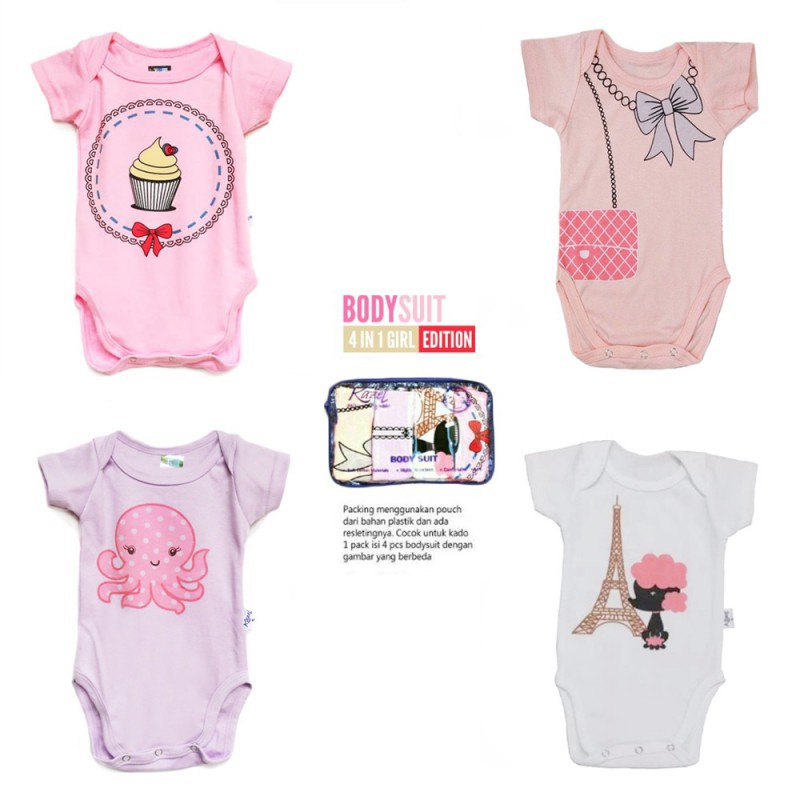 kazel bodysuit / jumper bayi 4in1 - motif girl (cupcake)