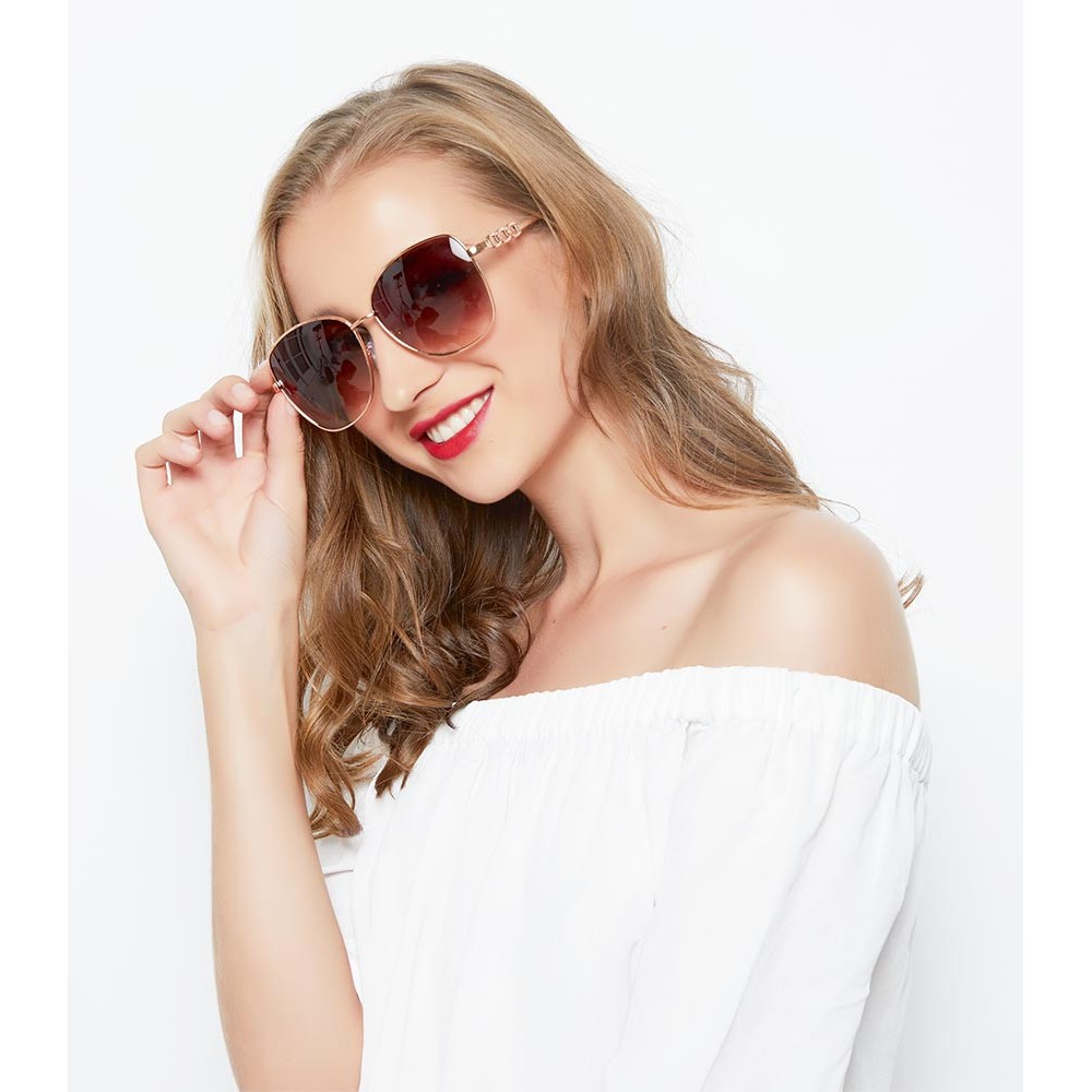kacamata dengan perpaduan lensa gradasi coklat dan warna rose gold pada bingkai dan gagang, dilengkapi kemasan spesialshapesquarefunctionstandartmaterial/fabrics standartcolorsbrown hue