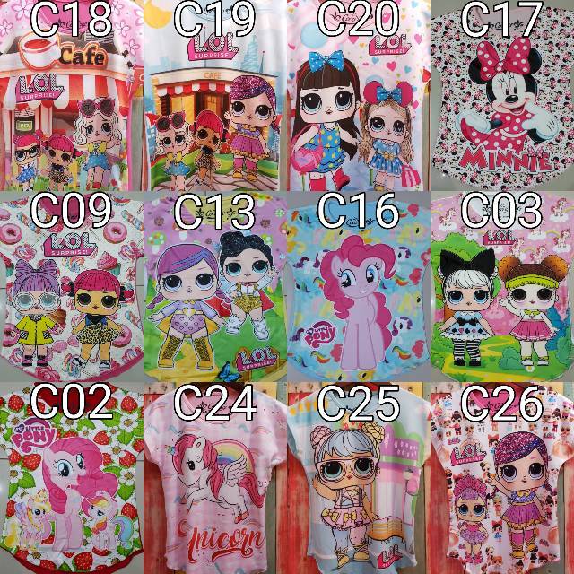 Kaos Anak Perempuan Pakaian 3pcs/PAKET GROSIR LOL 10-12-14 FULL PRINT CEWEK LUSINAN BAJU SURPRISE UNICORN Murah Bayi