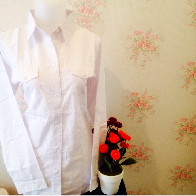#kemeja #putih #wanita #kantor #kantong / #saku #kantong2 #saku2 #polos #katun