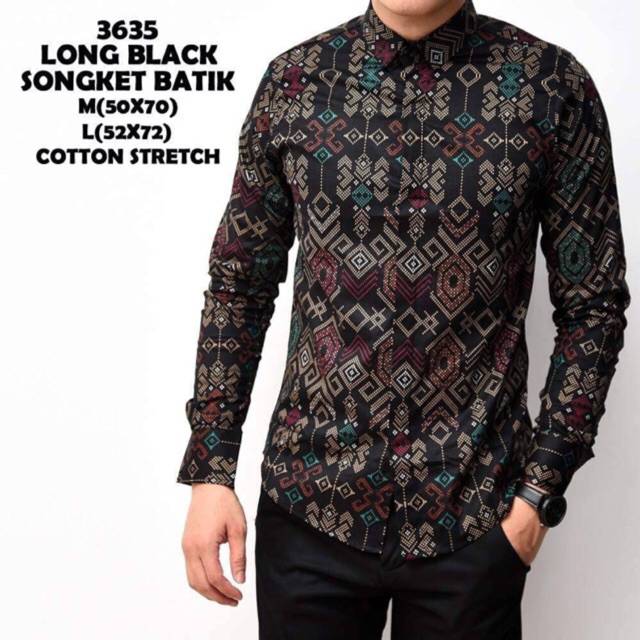 Kemeja Formal Atasan ALJOSA pria lengan panjang batik SONGKET HITAM motiv baju cowok kerja 3635 Murah