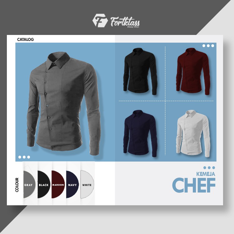 Kemeja Formal Atasan Fortklass HEM CHEF POLOS SLIMFIT PRIA LENGAN PANJANG PAKAIAN PUTIH HITAM MAROON Murah