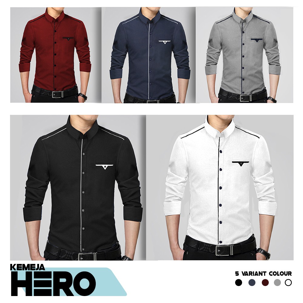 Kemeja Formal Atasan KEM HERO PRIA LENGAN PANJANG HEM POLOS SLIM FIT COWO WARNA PUTIH HITAM MAROON Murah