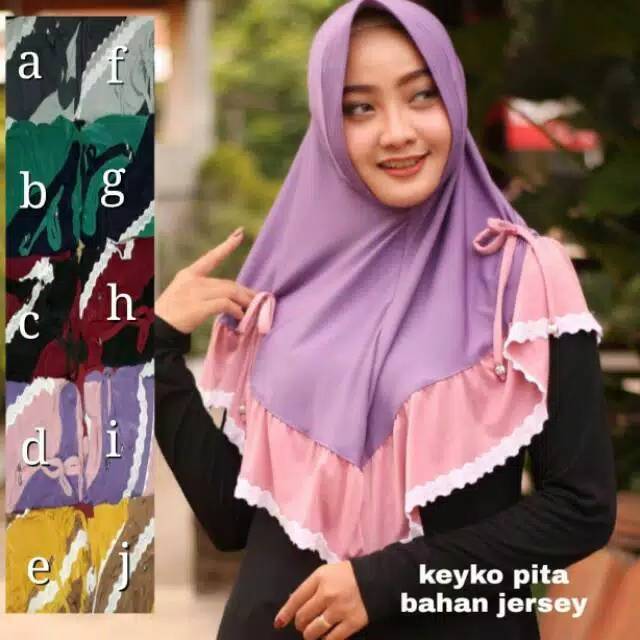 samping kanan kiri khimar ada aksen pita, kh nar terdiri dari 2 warna dengan aksen bawah terdapat renda.