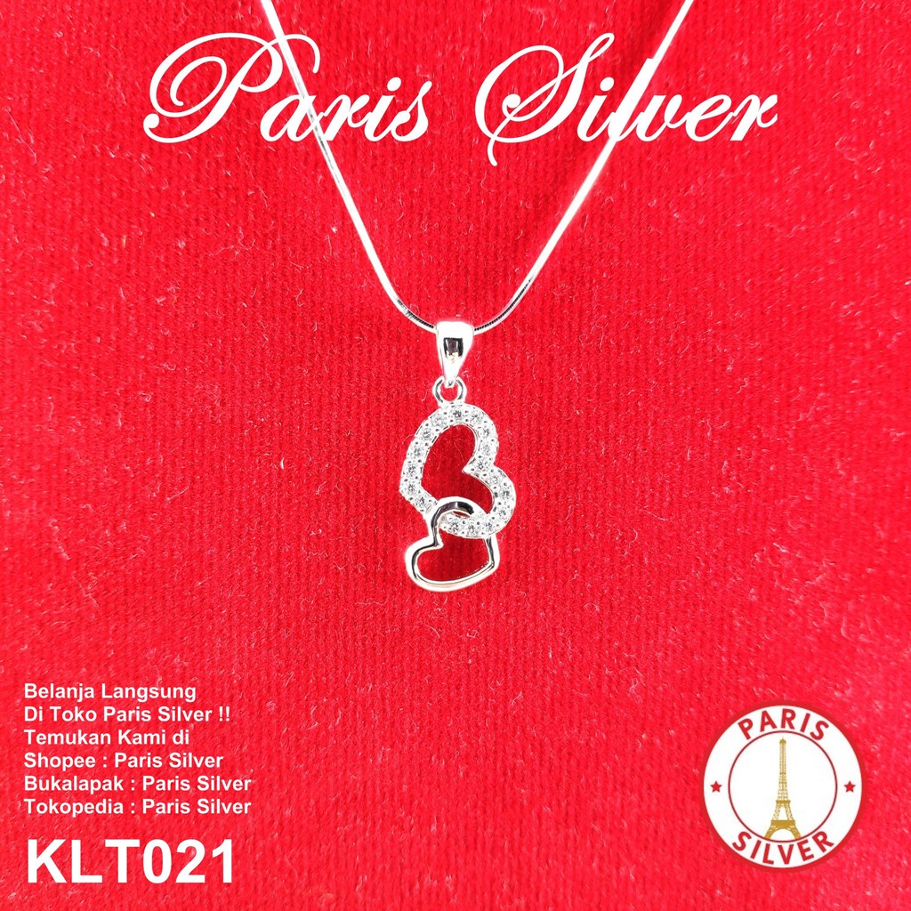 Liontin Kalung love pasangan permata perak silver 925 lapis emas putih model cassandra wanita Murah Aksesoris