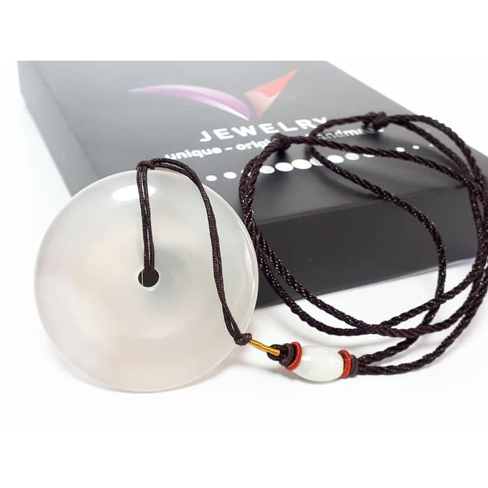 kalung tali liontin batu giok donat jumbo tebal - kalung liontin terapi kesehatan