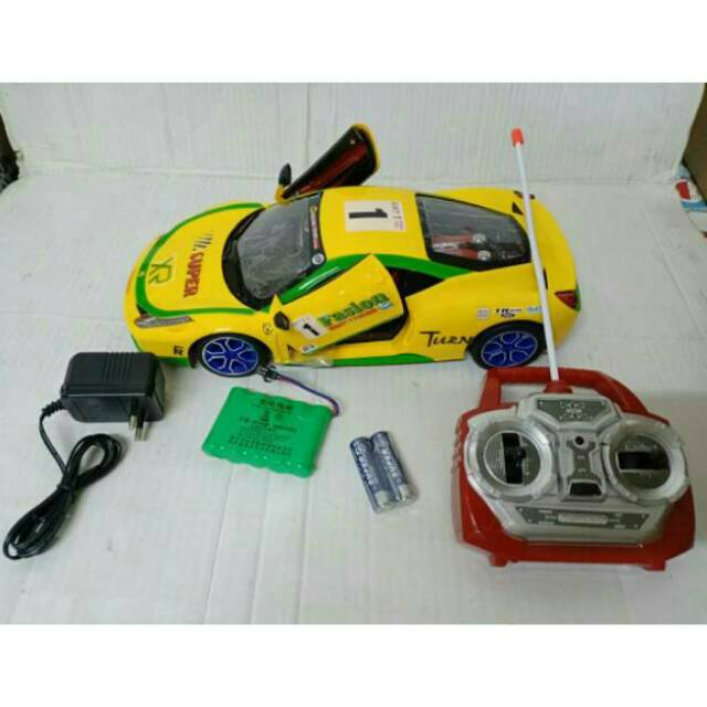 rc super racing untuk anak usia 5th+ jenis mobil sport berukuran 31x13x8cm skala 1:14 dilengkapi dengan remotnya termasuk charger dan battery pack untuk mobil. dirancang keren dan menarik dengan fiture dapat berjalan maju, mundur, belok kanan/kiri, nyala lampu serta pintu mobil yang dapat dibuka tutup menggunakan remote. selain cocok untuk dikoleksi mainan ini bagus untuk melatih koordinasi antara tangan dan mata, melatih daya motorik, konsentrasi serta imajinasi dalam bermain. bahan material plastik berkulitas yang kokoh, halus dan aman, menggunakan 2pcs battre aa ( termasuk) pada remote. ukuran kemasan 46x20,5x19cm