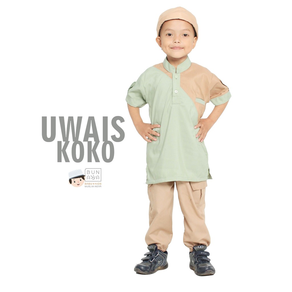 uwais koko. uwais koko merupakan tunik koko dengan variasi dua warna favorit, dan celana jogger warna netral dengan variasi saku di kedua sisinya. dilengkapi dengan peci topi yg menambah tampilan uwais koko semakin stylish👌
