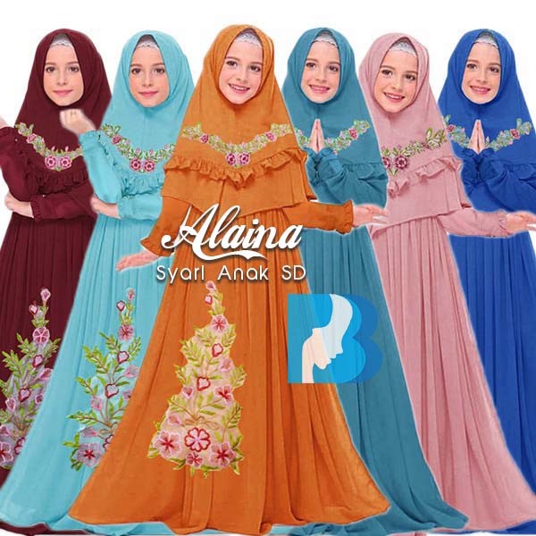 Pakaian Muslim Anak Perempuan ALAINA GAMIS SD GRATIS HIJAB FULL LINEN BORDIR CANTIK ELECTRIK DUSTY MAROON TOSCA BIRU KUBUS Murah