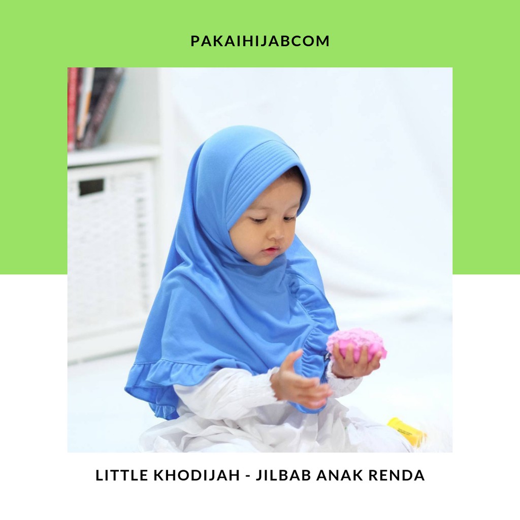 model pertama jilbab anak yg dikeluarkan jilbabafra. filosofi namanya diambil dr nama ibunda khodijah yg merupakan wanita pertama yg masuk islam dan mengimani nabi muhammad sebagai rasulullah. little khodijah menggunakan pet busa dan bermodel renda kecil yg manis, cocok untuk anak-anak. menggunakan bahan kaos adeem, lembut, nyaman, tidak mudah berudul. terdiri dari 3 pilihan ukuran dan 35 pilihan warna.
