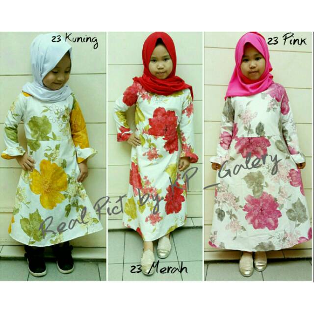 gamis anak berbahan katun jepang asli ya.. tersedia dalam beberapa ukuran :