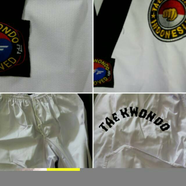 bordir taekwondo di belakang baju. bet taekwondo indonesia bordir. belahan badan tinggi tanpa karet. non merk.