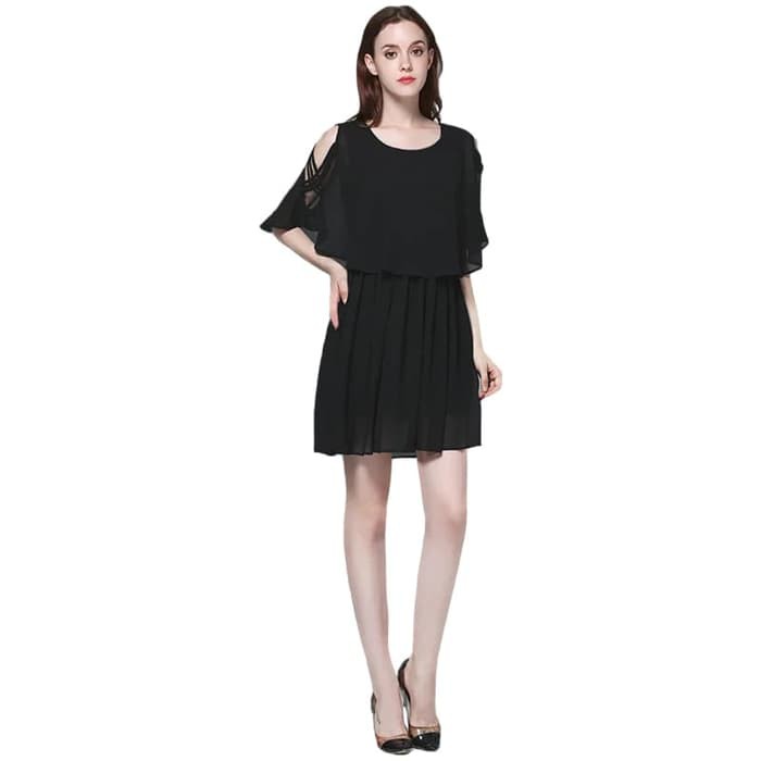dress sifon gaya korea model bahu terbuka terbaru - new indri, dress gaya korea model terbaru dari nanotame, terbuat dari bahan sifon berkualitas, di lapis kaos di bagian dalam nyaman di pakai. model simpel dan elegan, dengan variasi bahu terbuka sedikit,dan jahitan model tali, menambah cantik penampilan anda, cocok untuk di pakai dalam berbagai acara.