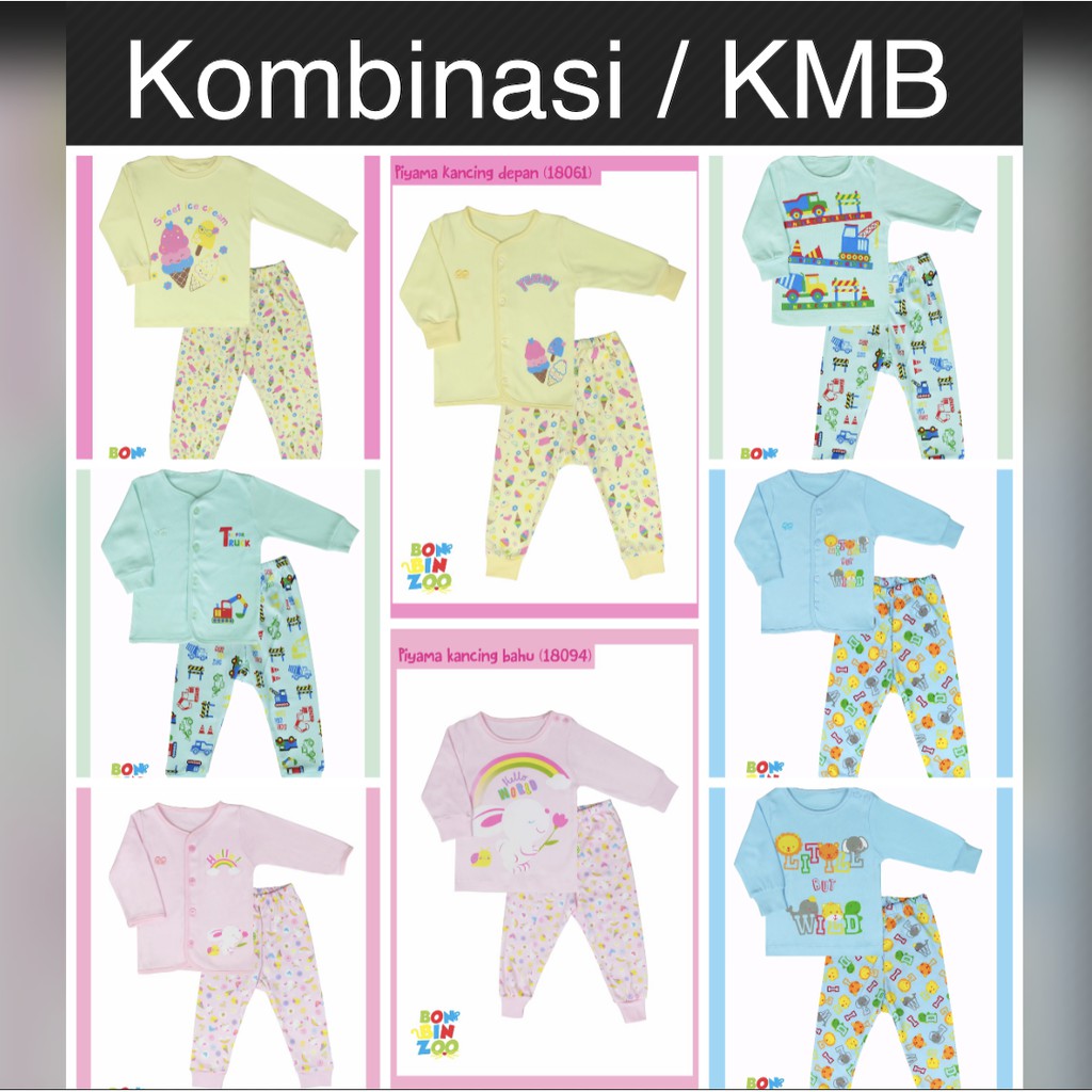Piyama Bayi Pakaian Setelan Panjang Kombinasi POLOS MOTIF Bonbinzoo SNI 0-3 3-6 6-12m Cherrybabykidsshop Murah Anak