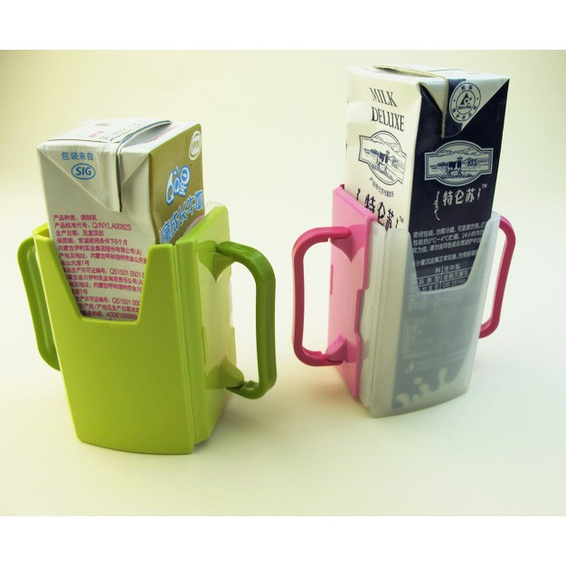 milk box holder untuk anak belajar pegang minuman kotak nya sendiri. mereka bisa minum sendiri dengan lebih aman tanpa resiko minuman kotak terpencet dan airnya tersemprot keluar.