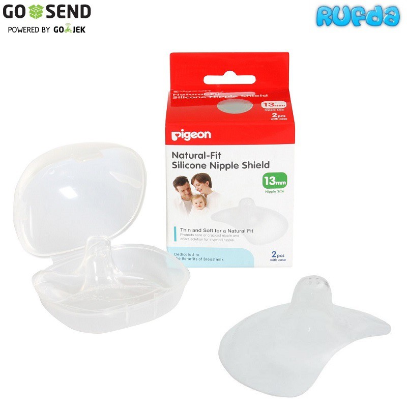 pigeon natural fit silicone nipple shield pelindung puting isi 2 with case biasa dipakai sementara pada kondisi puting ibu yang lecet atau pecah-pecah. pelindung puting (nipple shield) dibuat untuk melindungi puting payudara yang luka akibat menyusui. pelindung ini juga berguna untuk membantu puting yang datar serta melindungi puting dari bayi yang cenderung menggigit saat masa tumbuh gigi. pigeon natural fit silicone nipple shield (13mm) didesain menurut bentuk alami puting susu sehingga bayi yang menyusu tidak akan merasakan perbedaannya.