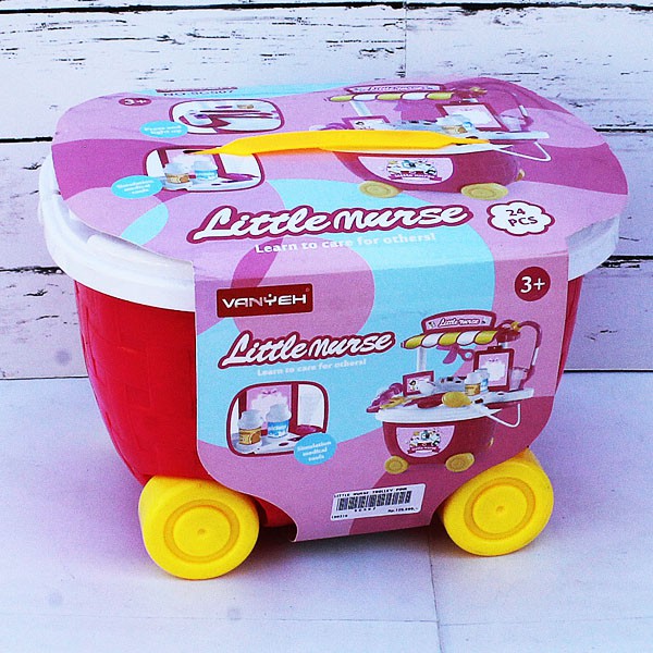 satu set peralatan dokter-dokteran yang dikemas dalam bentuk trolley. cocok untuk anak yang suka berperan