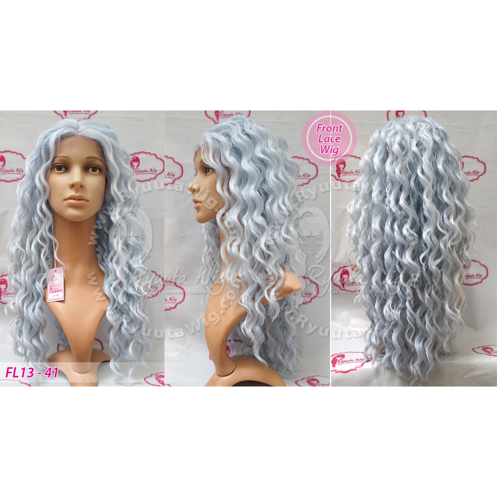 Rambut Palsu Aksesoris FRONT LACE WIG Long Curl Curly Fairy Mermaid Panjang Keriting Gelombang Blue Biru Murah