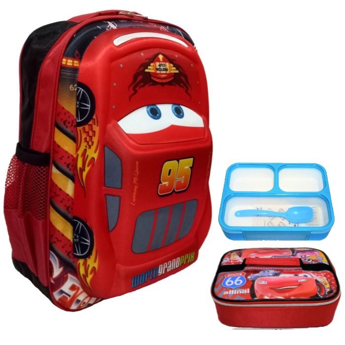 dibagian kanan kiri tas ada kantong jaring bisa untuk tempat botol minum anak