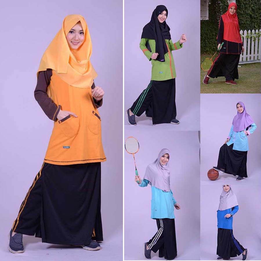 Rok Bawahan Muslim Wanita CELANA TRAINING SPORTY UNTUK MUSLIMAH ALNITA Warna Hitam dengan variasi List Murah