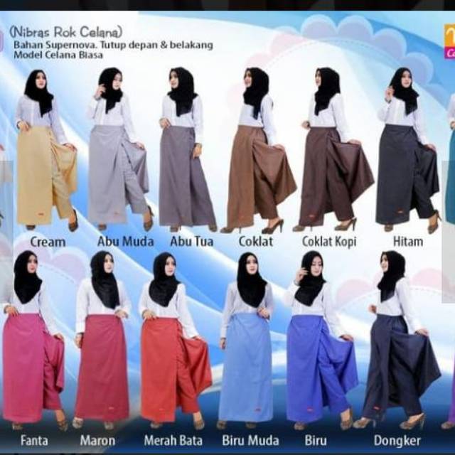 rok celana nibras nrc 07 harga ecer rp 135, berat : 400 gram supernova standar koleksi terbaru rok celana nibras nrc 07, perpaduan antara rok dan celana yang polos elegant dan simple memudahkan mom dan sista beraktivitas sehari-hari. dpt digunakan utk acara formal maupun santai. harga 135 bahan supernova model standar tutup depan dan belakang celana biasa (bukan model jogger) ===== mohon chat terlebih dahulu utk ketersediaan stok warna dan size #rokcel #rok #celana #rokcelana #nibras #rocela #rocella #celanarok